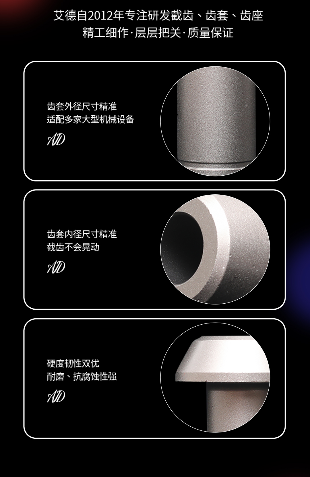 产品特性:艾德CT170系列截齿齿套分为优质和普通两种材质类型,前者属于超高强度钢,相较于后者具有高强度、高韧性以及良好的淬透性。