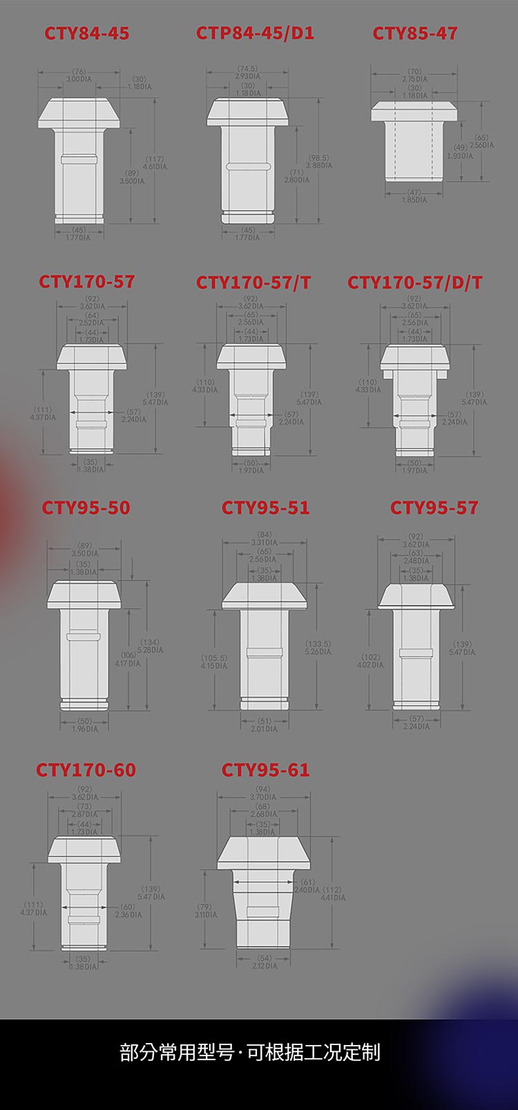 产品规格:CT84-45,CT85-47,CT85-50等,可特殊定制